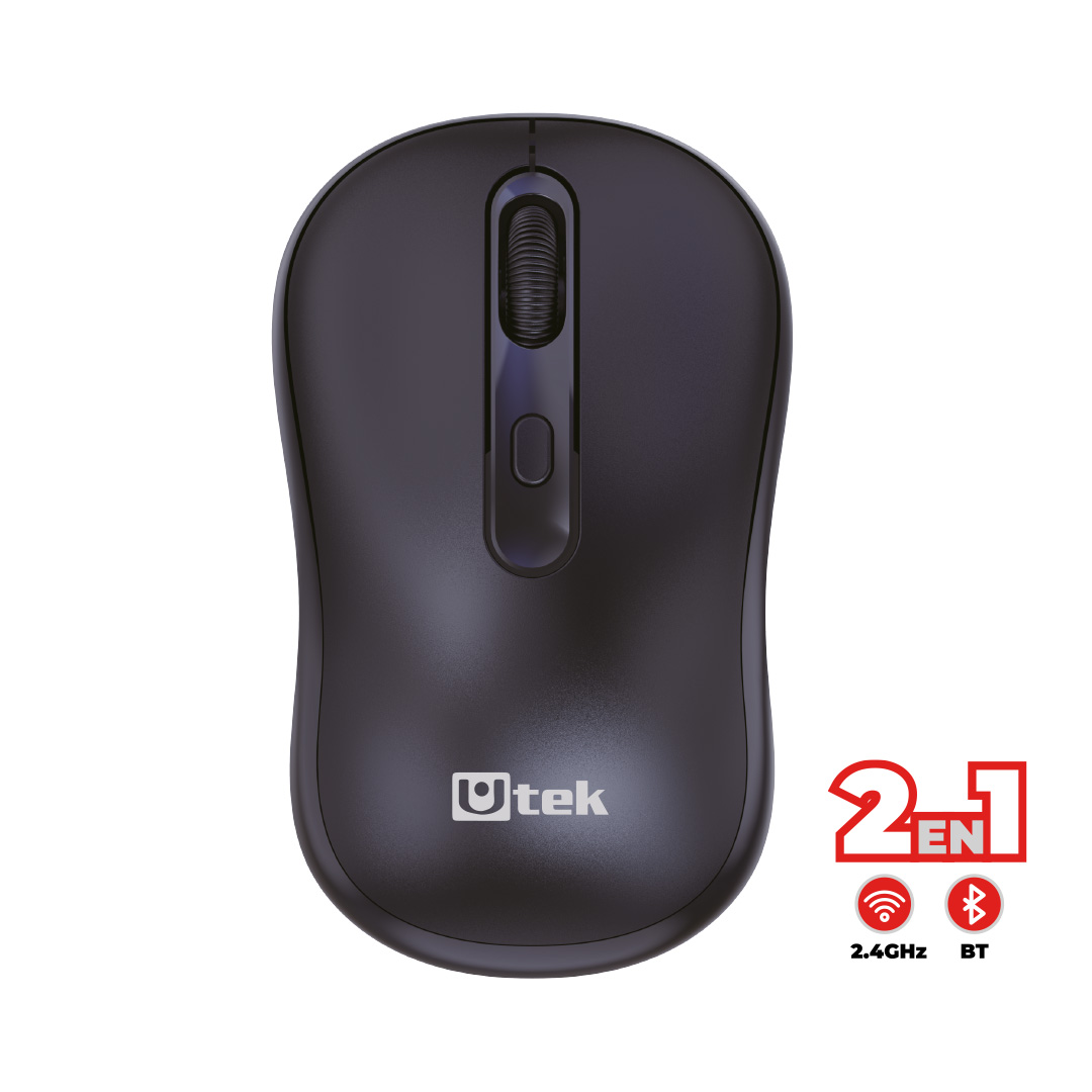 El Mouse Inalámbrico 2 en 1 UT-MOW410 UTEK, combina conectividad dual 2.4 GHz y Bluetooth 5.0, ofreciendo mayor flexibilidad para trabajar con distintos dispositivos sin necesidad de cables.