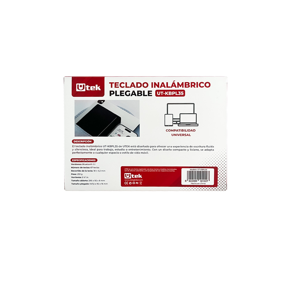 El teclado inalámbrico UT-KBPL35 de UTEK está diseñado para ofrecer una experiencia de escritura fluida y silenciosa, ideal para trabajo, estudio o entretenimiento. Con un diseño compacto y liviano, se adapta perfectamente a cualquier espacio o estilo de vida móvil.